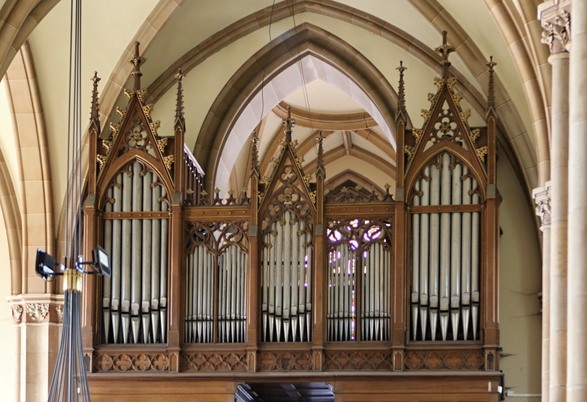 Dvoumanuálový mechanický kuželkový nástroj postavila firma Rieger v roce 1889 (op. 240). Dispozičně i zvukově pozoruhodný romantický nástroj byl v minulosti narušen několika nešťastnými dispozičními úpravami. V letech 2006-2009 proběhla rozsáhlá rekonstrukce celého nástroje, který je v současné době ve výborném technickém stavu. Je vhodný ke koncertním účelům.