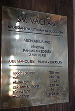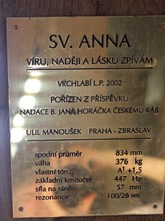 Malý zvon (Sv. Václav) - spodní průměr 72,5 cm, váha 200 kg, Odlil v roce 1771 zvonař Ignác Drock v Hradci Králové.