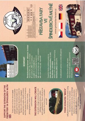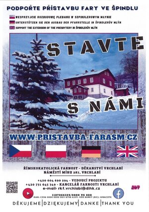 Prosíme o podporu přístavby fary ve Špindlerově Mlýně. V kostele i na faře jsou k dispozici plakáty i letáčky, můžete je nabídnout ve svém okolí. Více informací pristavba-farasm.cz